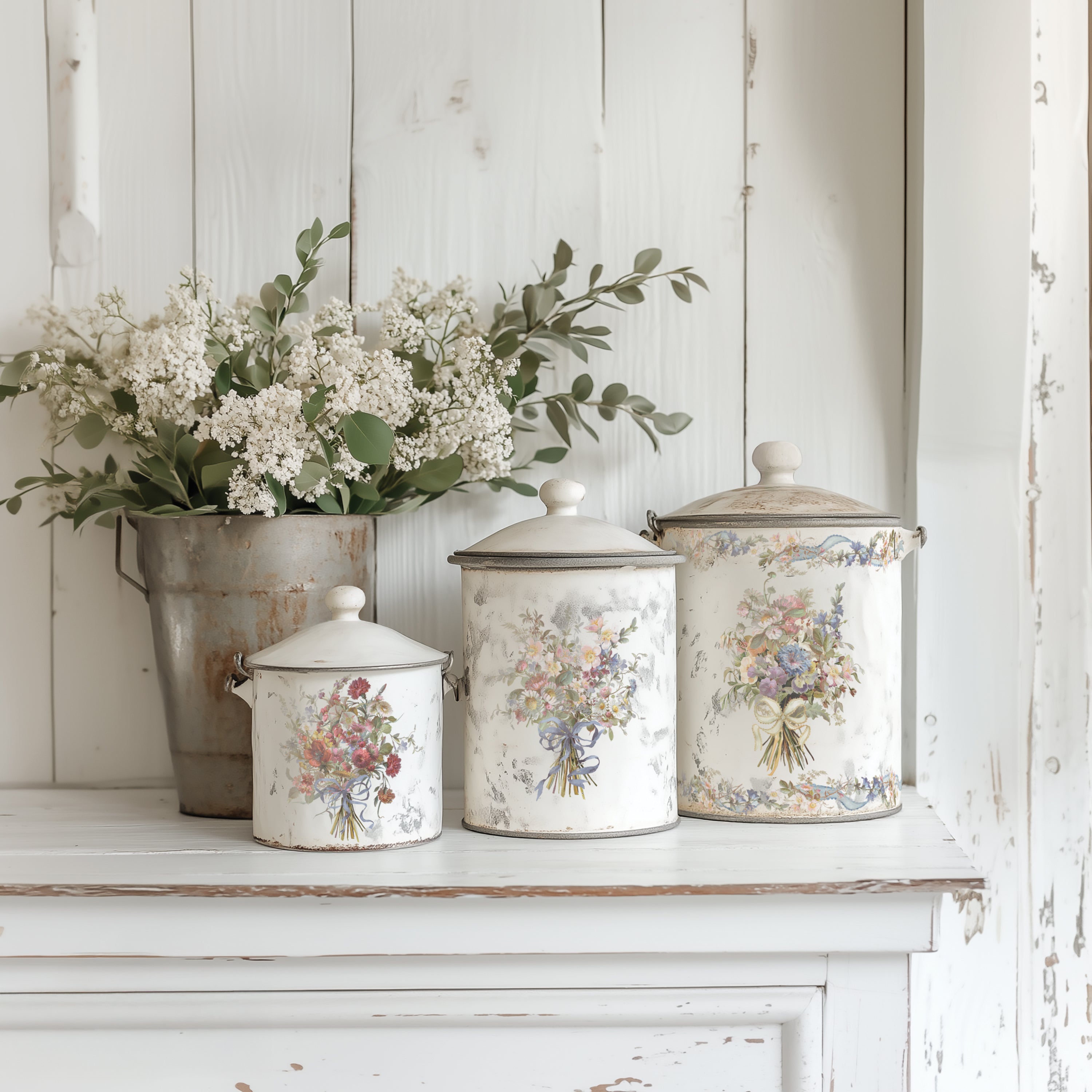Designed with both small décor and furniture scale in mind, Madeleine includes corners, borders, drawer-backer motifs, and full bouquets that can stand alone as focal elements. Many of the arrangements come directly from the antique artwork exactly as they were found, offering lavish compositions that feel feminine, expressive, and beautifully over the top. Whether placed on a tray, a chest of drawers, or a curated vignette, Madeleine captures the indulgent beauty of historic French interiors in a way that invites bold, elegant creations.